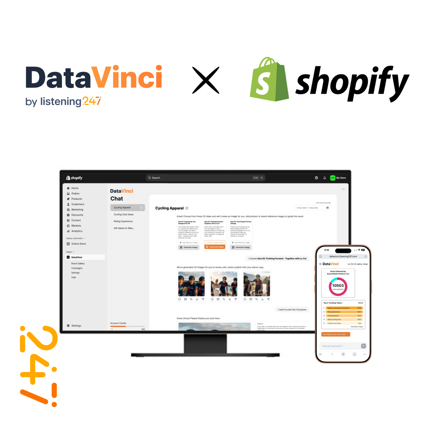 When listening247 took a look at how small to medium size businesses operated, how they typically created social media content, and where they were doing business, we knew we needed to take our web app of DataVinci and build it directly into Shopify.